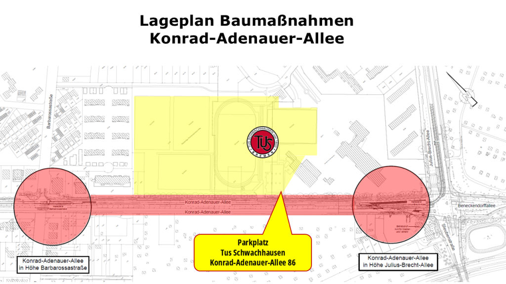 der Ausbau der Straßenbahnlinie 2 im Rahmen des Projekts „Linie 2 verbindet“ wirkt sich in den kommenden Monaten auf die Erreichbarkeit unserer Sportanlage an der Konrad-Adenauer-Allee aus. Wir wurden als Verein im Rahmen eines Anliegerdialogs über die geplanten Maßnahmen informiert und halten Euch hier regelmäßig auf dem aktuellen Stand.