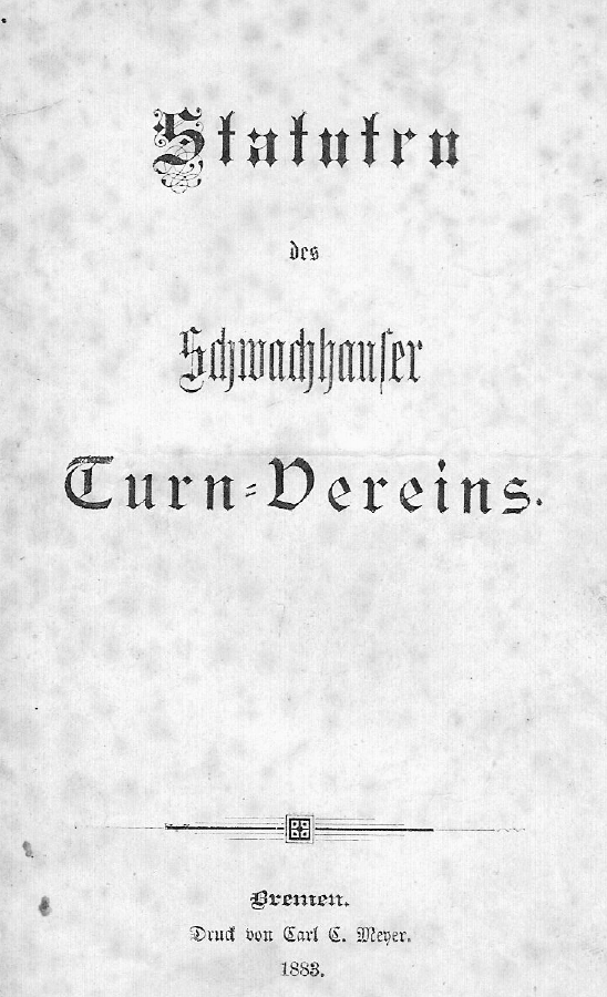 Wer ein wenig in der Historie blättern möchte, kann auch die Original Statuten des Schwachhauser Turnvereins von 1883 einsehen und wird sicher überraschendes lesen können.